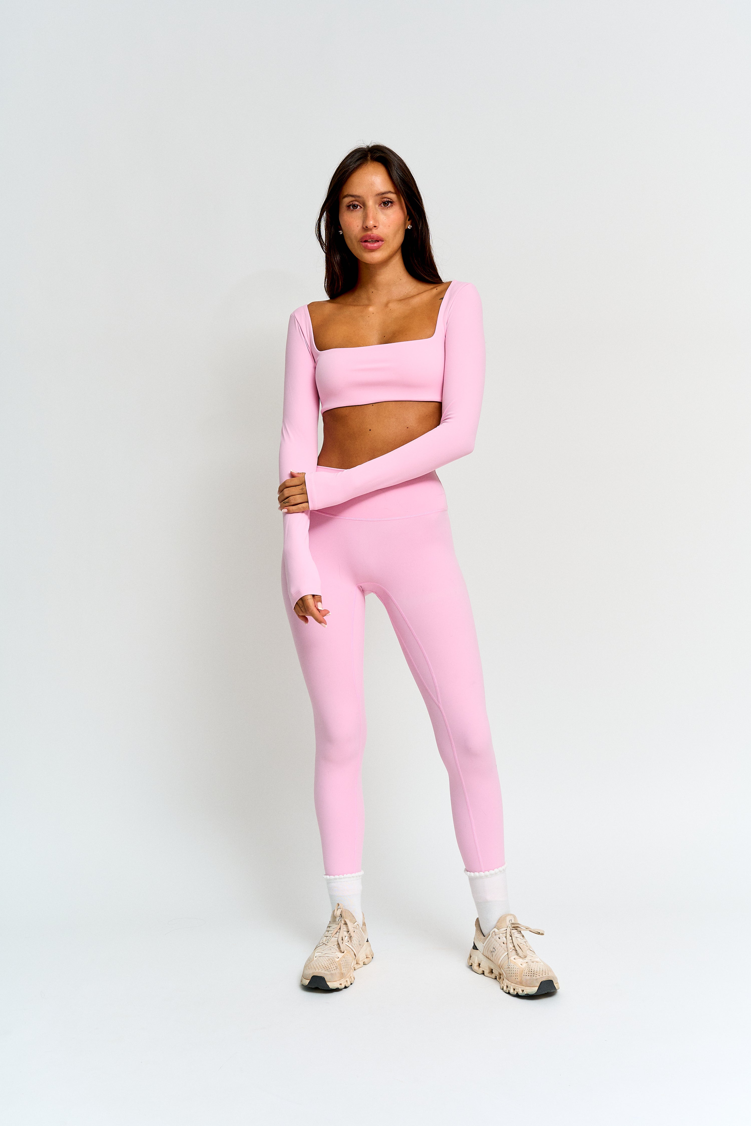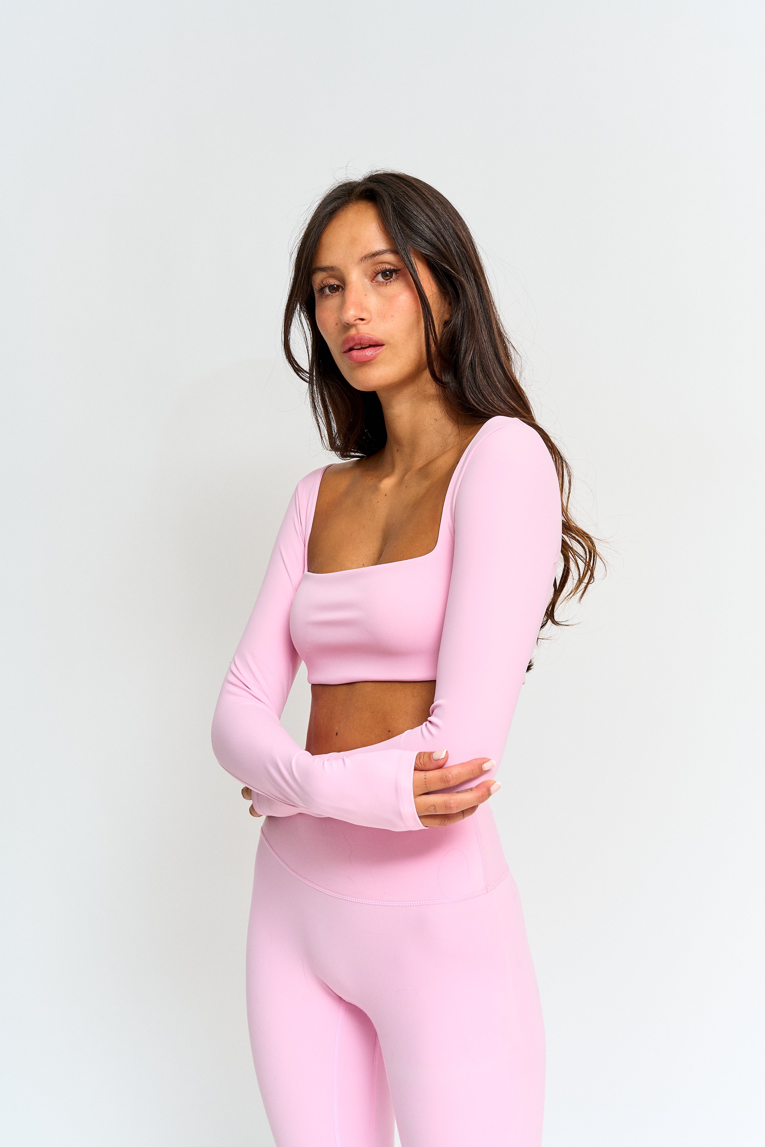 La mezcla ideal entre elegancia y funcionalidad. Su diseño de manga larga y hombros cubiertos crea una silueta estilizada y moderna, manteniéndote cómoda y firme en cada movimiento. El fit es corto, perfecto para combinar con calzas tiro alto y lograr ese look deportivo–chic que tanto amamos.